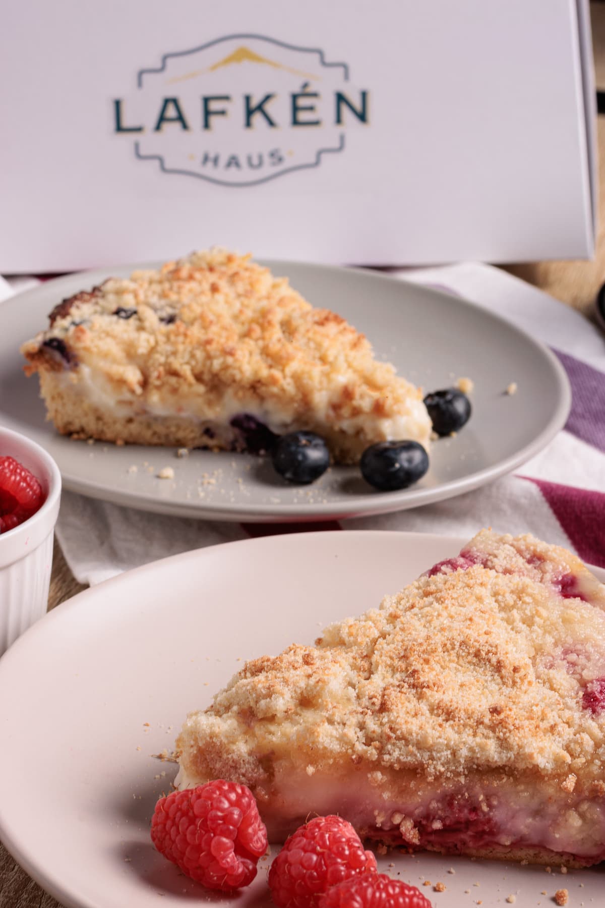 Tenemos dos formatos: Kuchen grande (10-12 porciones) y Kuchen pequeño (4-6 porciones).